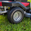 The durable 52-inch deck with a 50-inch cutting width engages quickly with a pull of a knob, while 7 adjustable cutting heights let you customize your cut. Wide 5-inch front wheels and 10-inch rear turf tires provide excellent traction without damaging your lawn. Mow up to 3.5 acres per tank with the 3-gallon fuel capacity, and finish faster with speeds up to 7 mph. Effortlessly maneuver around obstacles with precision and control with the Murray Cruz XD.